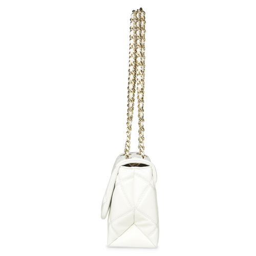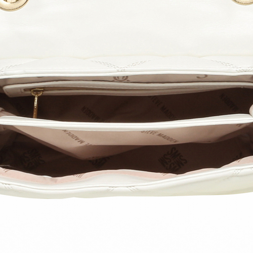Ben je op zoek naar een tas die je stijl compleet maakt? Dan is deze Bvolturi crossbodytas van Steve Madden echt iets voor jou. Echt een fijne tas om je stijl mee te laten zien. Gemaakt van wit doorstikt imitatieleer met een vet wieberpatroon - echt een rock chick vibe. Helemaal opgepimpt met een groot goudkleurig Steve Madden logo, een stoere schakelketting en hippe eyelets met het branding erop. De tas loopt lekker taps toe, dus super stylish.