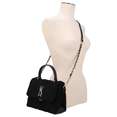 Deze Steve Madden handtas uit de Bmikki serie is een echte eyecatcher! Met zijn elegante imitatiesuède in zwart en het doorgestikte patroon, straalt hij klasse en stijl uit. Steve Madden, afkomstig uit New York, staat bekend om zijn trendy en modieuze ontwerpen die altijd op de laatste trends inspelen. De goudkleurige hardware, waaronder het embleem en de beschermnoppen, geven de tas een chique uitstraling. De gevlochten schakelketting als schouderband voegt een vleugje glamour toe, waardoor deze tas perfect is voor elke gelegenheid.