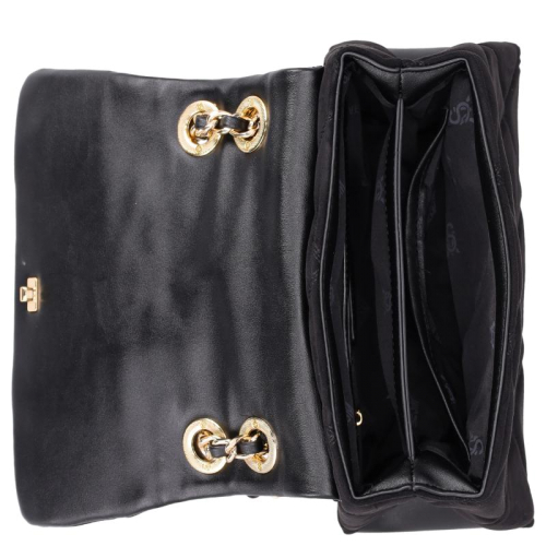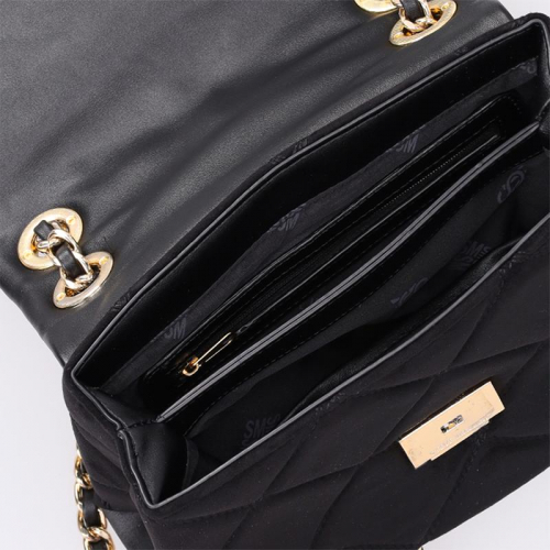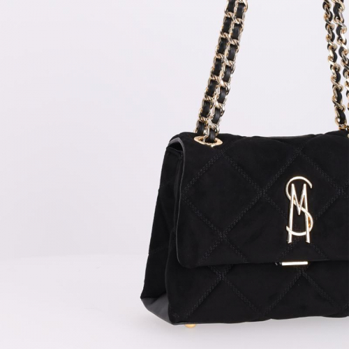 Ben je op zoek naar een tas die je stijl compleet maakt? Dan is deze BvoltS crossbodytas van Steve Madden echt iets voor jou. Echt een fijne tas om je stijl mee te laten zien. Gemaakt van zwart doorstikt imitatie suède met een vet wieberpatroon. Helemaal opgepimpt met een groot goudkleurig Steve Madden logo, een stoere schakelketting en hippe eyelets met het branding erop. De tas loopt lekker taps toe, dus super stylish.