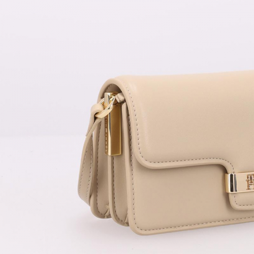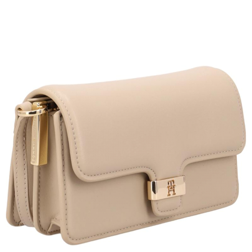 De TH Heritage Mini van Tommy Hilfiger in beige is een compacte maar krachtige eyecatcher. Gemaakt van stevig kunstleer en afgewerkt met goudkleurige hardware straalt deze tas moderne elegantie uit. De klep is voorzien van het iconische Tommy Hilfiger-logo iin goudkleurig metaal, dat niet alleen en stijlvol accent vormt, maar ook functioneert als sluiting. Dankzij de stevige constructie behoudt de tas haar vorm, zelfs wanneer ze leeg is.