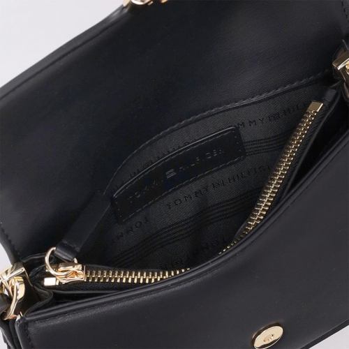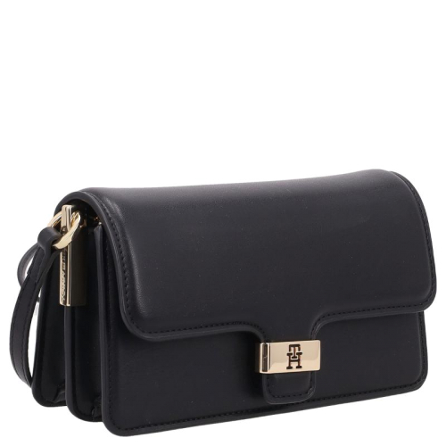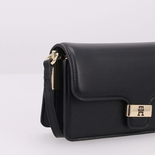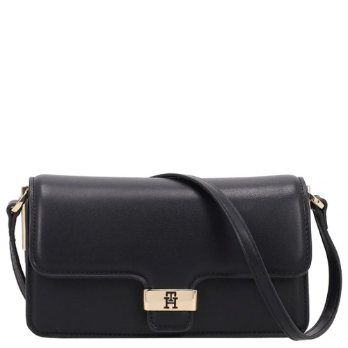 De TH Heritage Mini van Tommy Hilfiger in zwart is een compacte maar krachtige eyecatcher. Gemaakt van stevig kunstleer en afgewerkt met goudkleurige hardware straalt deze tas moderne elegantie uit. De klep is voorzien van het iconische Tommy Hilfiger-logo iin goudkleurig metaal, dat niet alleen en stijlvol accent vormt, maar ook functioneert als sluiting. Dankzij de stevige constructie behoudt de tas haar vorm, zelfs wanneer ze leeg is.
