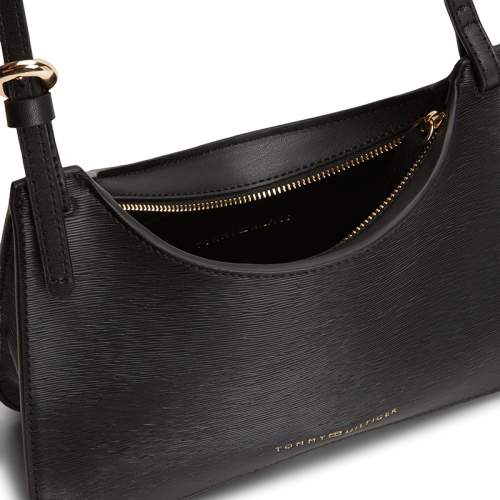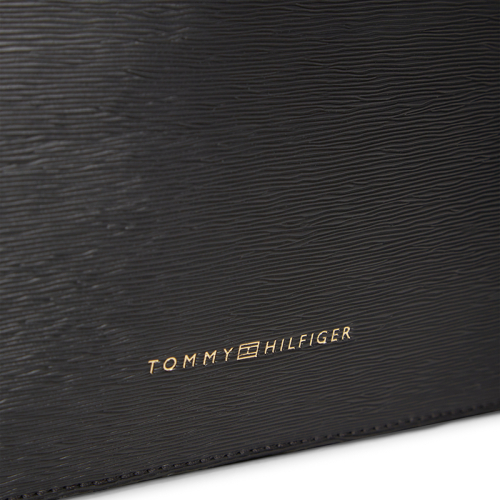 De Tommy Hilfiger TH Modern schoudertas in klassiek zwart met een stijlvol gofpatroon en luxe goudkleurige details is een echte blikvanger! Of je nu casual of chic wilt gaan, deze tas tilt elke outfit naar een hoger niveau.