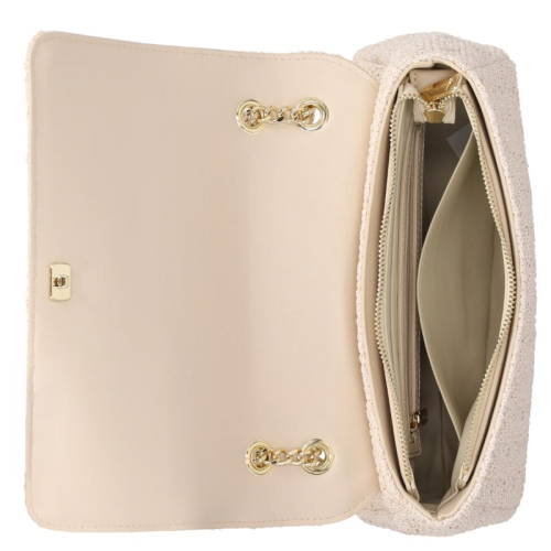 Onder de elegante klep van deze tas steekt subtiel een kliksluiting tevoorschijn. Hiermee ben jij in één klik bij de ritssluiting van het hoofdcompartiment. Binnenin vind je een ritsvak en een steekvakje, perfect voor al jouw essentials. Of je nu je telefoon, sleutels of make-up bij je hebt, alles heeft zijn eigen plekje in deze tas.