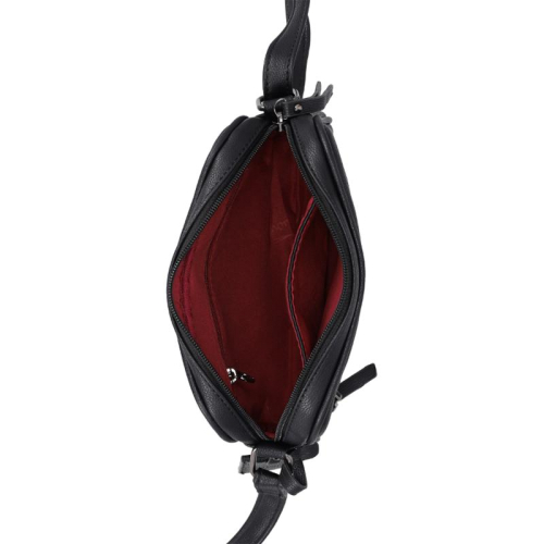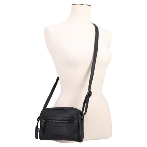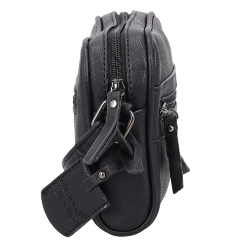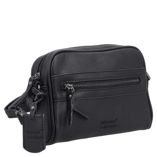 De Wimona Ella crossbodytas in stijlvol zwart kunstleer combineert elegantie en functionaliteit in één compact design. Perfect voor elke gelegenheid, dankzij de praktische indeling en zilverkleurige details. Voeg een vleugje klasse toe aan jouw outfit met deze must-have tas!