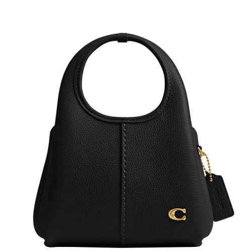 De Coach Lana is een elegante handtas in zwart leer, afgewerkt met luxe goudkleurige hardware. Aan de zijkant hangt een stijlvolle bag charm waarbij goudkleurige details zijn gecombineerd met het zwarte leer. Op de voorkant prijkt subtiel rechtsonder een goudkleurige 'C', wat de tas een verfijnde een herkenbare uitstraling geeft.