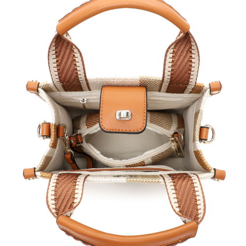 Stel je voor: een tas die jouw outfit een frisse, modieuze boost geeft. De Emily & Noah Jasmin handtas is precies dat! Met zijn subtiele beige en wit gestreepte ontwerp, verrijkt met warme bruine kunstleren details en goudkleurige hardware, straalt deze tas elegantie en stijl uit. Emily & Noah, een merk dat bekend staat om zijn moderne en betaalbare luxe, brengt met deze tas een stukje mode uit hun Bag in Bag collectie naar jouw garderobe. Naast de grote tas krijg je een tweede, compacte tas met een zachte, afgeronde bovenkant. Perfect voor elke gelegenheid en outfit!