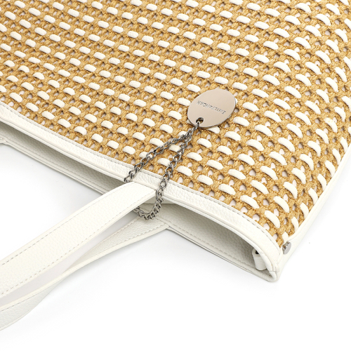 Je voelt de zomervibes meteen met deze Emily & Noah medium cityshopper, onderdeel van de stijlvolle Jella collectie. Flaneer over de boulevard met deze elegante shopper in een frisse printte kleur, verrijkt met een prachtig bruin gevlochten raffia detail. De zilverkleurige tassenhanger met het merklogo voegt een speelse touch toe, terwijl de branding op de tas het geheel compleet maakt. Emily & Noah, een merk dat bekendstaat om zijn trendy ontwerpen en kwaliteit, levert je hier een eyecatcher die je outfit naar een hoger niveau tilt. Perfect voor diegenen die houden van een mix van classy en casual.