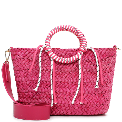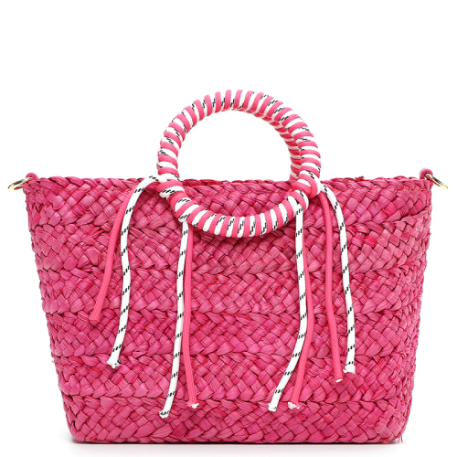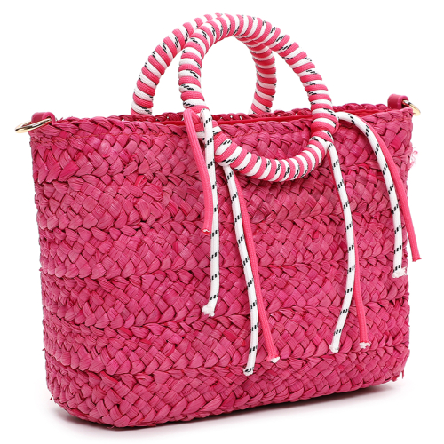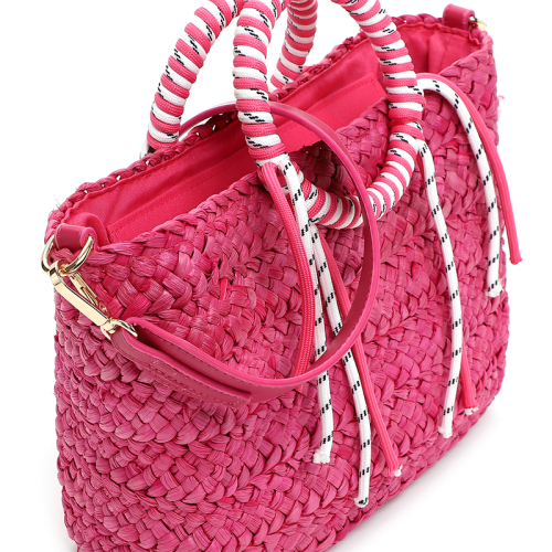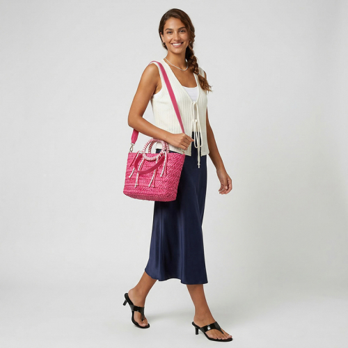 Haal de zomer in huis met deze stijlvolle raffia shopper van Emily & Noah, jouw onmisbare roze handtas voor ultieme vakantievibes!