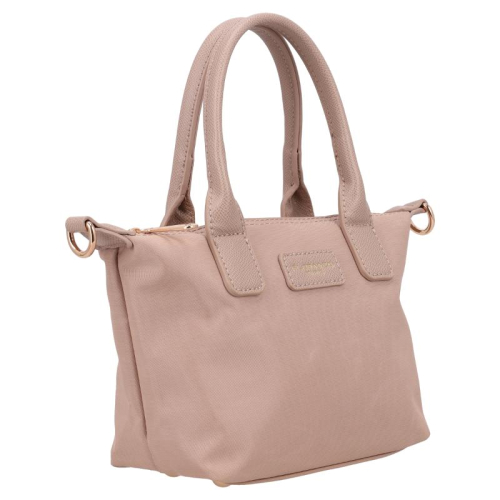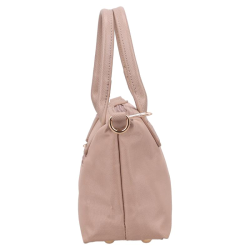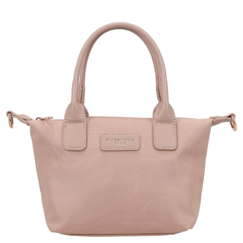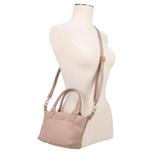 Deze beige tas is een echte blikvanger, gemaakt van glad en bestendig nylon. De glanzende goudkleurige hardware zorgt voor een vleugje luxe, terwijl de kunstleren details op de voorkant en handvatten het geheel een elegant tintje geven. Het silhouet is compact en chic, perfect voor de moderne vrouw die stijl en functionaliteit weet te combineren. Het merk Flora & Co is afkomstig uit Frankrijk en staat bekend om zijn stijlvolle, praktische ontwerpen die een plekje hebben veroverd in de modewereld.