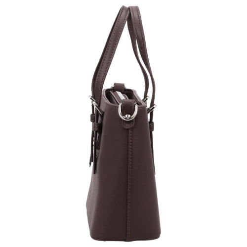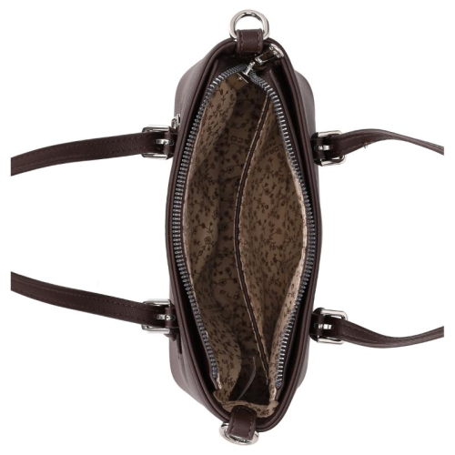 De Flora & Co handtas uit de sprankelende Esmee collectie straalt elegantie uit met de kleur bruin en subtiele zilverkleurige details. Het merk Flora & Co, bekend om zijn Franse roots, brengt altijd een vleugje Parijse chic in hun ontwerpen. De tas is perfect voor de moderne vrouw die houdt van een stijlvolle, maar ingetogen look. Het logo prijkt klein en verfijnd aan de voorkant, wat deze tas een verfijnde en tijdloze uitstraling geeft.
