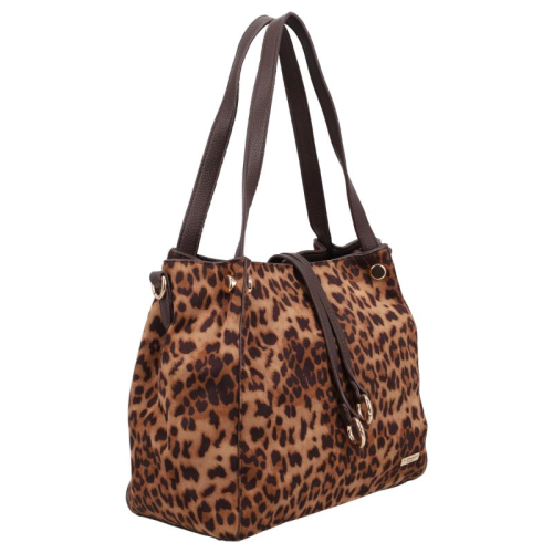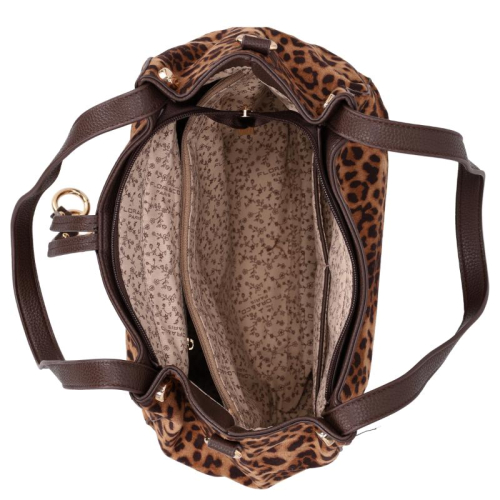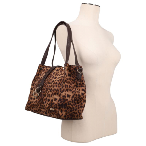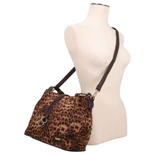 De Flora & Co Chloe is een opvallende handtas met een trendy panterprint en een zachte suède look. De goudkleurige hardware voegt een vleugje luxe toe, terwijl het speelse design perfect past bij een gedurfde en elegante stijl.