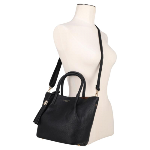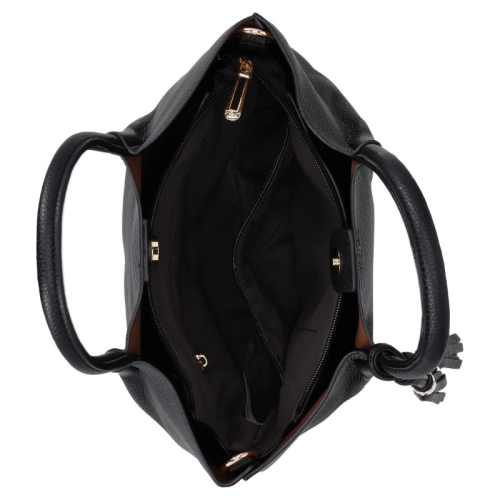De Flora & Co Davina handtas is een toonbeeld van Franse elegantie en verfijning. Flora & Co, een merk dat bekend staat om zijn stijlvolle en kwalitatieve ontwerpen, heeft ook met deze prachtige tas weer een parel aangeleverd. De minimalistische uitstraling van de tas in zwart kunstleer trekt meteen de aandacht, zonder te schreeuwen om aandacht. De generfde textuur van het materiaal vormt een perfect duo met de goudkleurige hardware en de speelse tassel bag charms. Dit is een tas die je met trots aan je arm draagt, of het nu naar kantoor is of een avondje uit. Het formaat van de tas is bovendien ook ideaal: groot genoeg voor je essentials, maar compact genoeg om elegant te blijven.