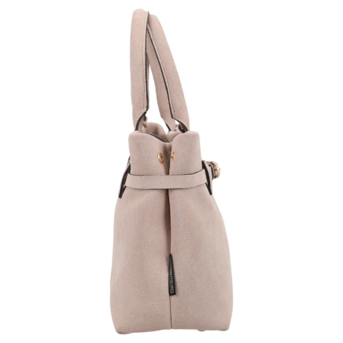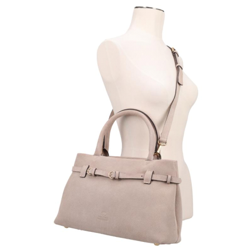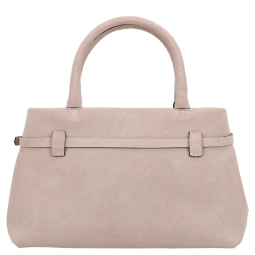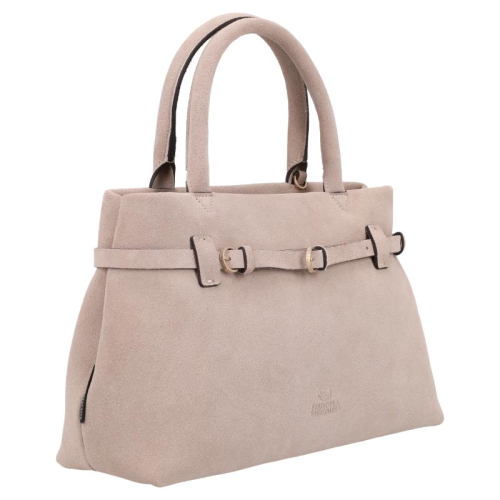 Upgrade je look met de Fred De La Bretoniere moderne suède handtas in stijlvol beige, afgewerkt met goudkleurig hardware – de perfecte mix van elegantie en functionaliteit!