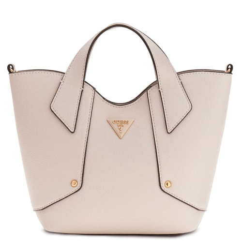 Wat een cutie! Dit imitatieleren handtasje uit de Guess collectie Darcy kan je in een handomdraai omtoveren naar een crossbodytasje. De vorm doet denken aan een stijlvol mandje, iets dat deze zomer helemaal in is. Voorzien van vaste draaghengsels en een verstelbare schouderband, biedt deze beige tas veelzijdigheid en gemak. Het iconische Guess-logo prijkt trots op de voorzijde. Dankzij de magneetsluiting heb je snel toegang tot je essentials.