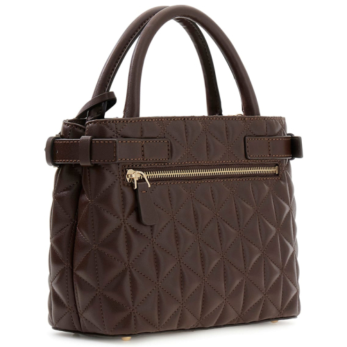 Stijlvol onderweg? Check! De Guess Paisleigh handtas is jouw perfecte metgezel. Deze compacte bruine tas straalt luxe uit met zijn gestikte ruitpatroon en schitterende goudkleurige hardware. De speelse bag charm en de gespdetails geven net dat beetje extra flair. Guess, een merk met een rijke geschiedenis in de modewereld, staat bekend om zijn trendy en kwalitatieve producten. Deze tas is geen uitzondering en past perfect bij de modebewuste vrouw die houdt van klasse en stijl.