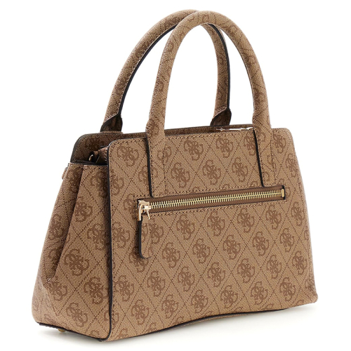De Guess Leona Logo logo handtas is een absolute must-have voor de modebewuste vrouw. Met zijn klassieke vorm en de iconische bruine logoprint die Guess zo beroemd maakt, herken je dit ontwerp direct als een echt Guess design. Het merk, afkomstig uit de Verenigde Staten, staat bekend om zijn trendy en stijlvolle items die perfect aansluiten bij de laatste modetrends. De Leona Logo tas is een echte blikvanger en tilt elke outfit naar een hoger niveau. De speelse gesp- en leerdetails op de voorzijde, samen met een bijpassende bag charm, maken het geheel helemaal af.