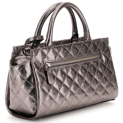 De Guess Idra handtas in het zilver is een echte eye catcher. Met ritssluiting en verschilldende vakken gaan al jouw spullen veilig op pad.