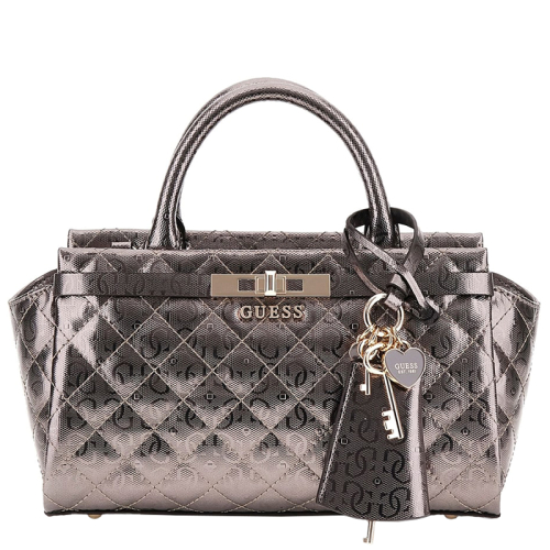 Deze handtas is een waar statement piece voor iedereen die houdt van een vleugje luxe in hun garderobe. Het rijke zilver van de Guess handtas uit de Idra collectie straalt klasse uit, terwijl de subtiele goudkleurige hardware een vleugje elegantie toevoegt. Het opvallende, maar toch verfijnde Guess-logo prijkt met trots op de voorzijde, samen met een speelse tassenhanger die net dat extra beetje flair geeft.