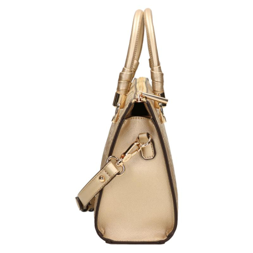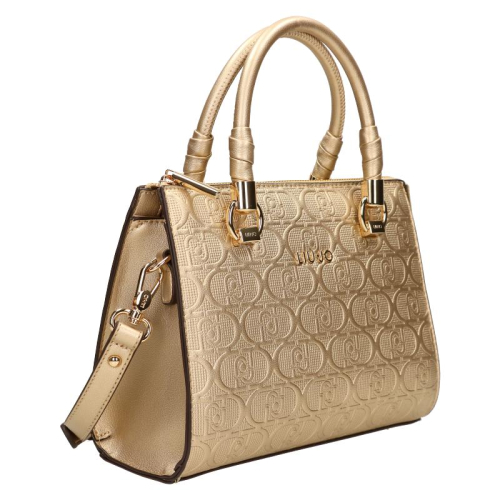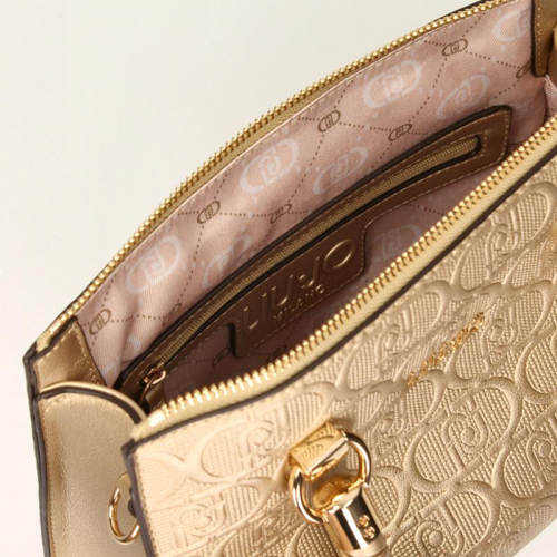 Stijlvol, chic en glamour - de Liu Jo Manh handtas is een echte eyecatcher! Deze modieuze tas is gemaakt van hoogwaardig goud polyester met een elegant logo-dessin. De rijke goudkleurige tas en hardware geeft het geheel een luxueuze, begeerlijke uitstraling. Dit kleine, pittige tasje past perfect bij jouw zelfverzekerde, fashionable look.