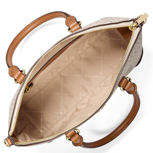 De Michael Kors Murphy handtas met een stijlvol beige logopatroon en lichtbruine details is de perfecte mix van stijl en functionaliteit. Deze elegante tas, gemaakt van hoogwaardig kunstleer, straalt luxe uit en is ideaal voor elke gelegenheid. Of je hem nu als handtas of schoudertas draagt, met de Murphy maak je altijd een stijlvolle indruk.