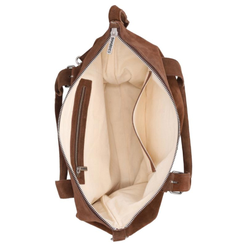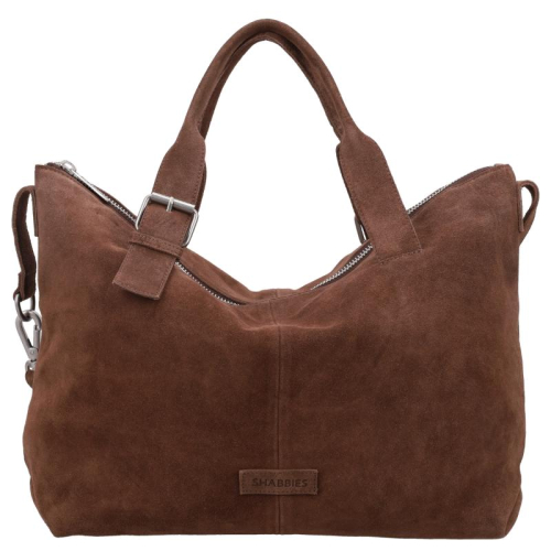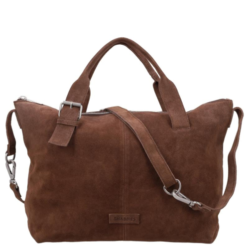 De Shabbies Amsterdam Essie handtas is het toonbeeld van minimalistische elegantie in een ruim jasje. Gemaakt van hoogwaardig bruin suède en afgewerkt met verfijnde zilverkleurige details, is deze tas zowel stijlvol als functioneel. Een perfecte keuze voor wie veel mee wil nemen, zonder in te leveren op uitstraling.