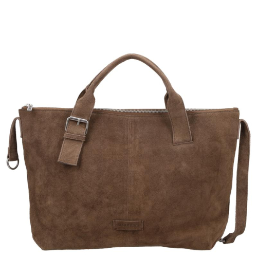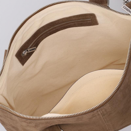 De minimalistische charme van de Shabbies Amsterdam Essie handtas maakt hem de perfecte finishing touch voor elke outfit. Gemaakt van hoogwaardig taupe suède, straalt hij luxe en verfijning uit en is hij afgewerkt met zilverkleurige hardware. Het merklogo op de voorkant zorgt ervoor dat de tas direct herkenbaar is als een creatie van Shabbies Amsterdam, terwijl het royale formaat ruimte biedt voor al je essentials.