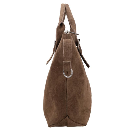 De Shabbies Amsterdam Essie handtas is het toonbeeld van minimalistische elegantie in een ruim jasje. Gemaakt van hoogwaardig taupe suède en afgewerkt met verfijnde zilverkleurige details, is deze tas zowel stijlvol als functioneel. Een perfecte keuze voor wie veel mee wil nemen, zonder in te leveren op uitstraling.