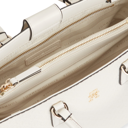 Met de TH Daily laat Tommy Hilfiger opnieuw zien waar het merk voor staat: tijdloos design met een moderne twist. De heldere beige kleur vormt de perfecte basis voor het verfijnde, in het materiaal verwerkte logopatroon. De zwarte belijning geeft het geheel een stijlvol contrast en benadrukt de strakke vorm van de tas. Afgewerkt met goudkleurige hardware straalt dit model ingetogen luxe uit. De tas weerspiegelt perfect de kenmerkende balans tussen Amerikaanse cool en verfijnde elegantie waar het merk om bekendstaat.