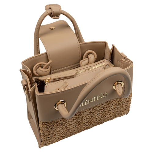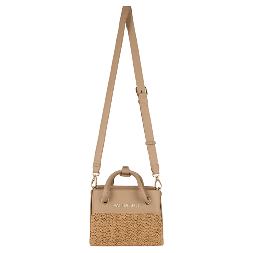 De Valentino Bags Alexia Summer handtas, uitgevoerd in een prachtige mix van beige raffia en taupe leer, is de ultieme zomeraccessoire die luxe en functionaliteit naadloos combineert. Dit stijlvolle model laat je gegarandeerd stralen op elke zonnige dag!