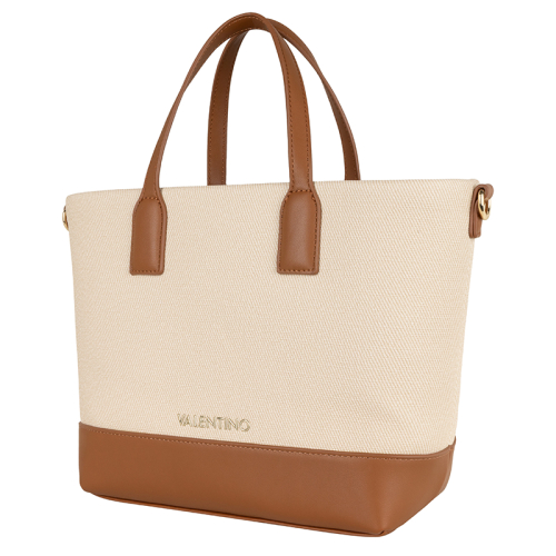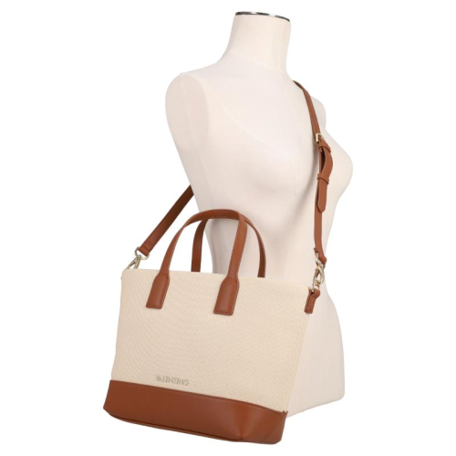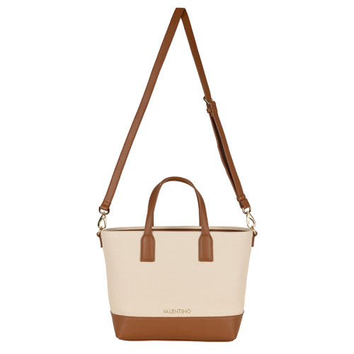 De Valentino Bags Atena Re handtas straalt elegantie uit met zijn beige kleur, verfraaid met verfijnde bruine leren details. Deze combinatie creëert een warme en uitnodigende uitstraling. De goudkleurige hardware, inclusief het iconische merklogo aan de voorkant, voegt een vleugje luxe toe. Valentino Bags, bekend om zijn Italiaanse roots, staat synoniem voor stijl en klasse in de modewereld.