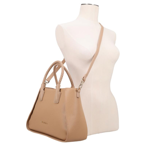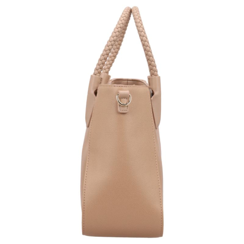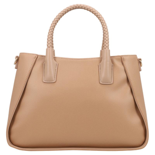 Valentino Bags weet hoe ze de show moeten stelen, en dat zie je meteen aan deze Eris Re handtas. Met zijn klassieke beige leerlook straalt hij elegantie en klasse uit. De schitterende goudkleurige hardware, inclusief het metalen merklogo op de voorzijde, voegt een vleugje glamour toe. De gevlochten handvatten geven een speels detail dat niet alleen mooi, maar ook uniek is. Valentino Bags is een merk dat bekend staat om zijn Italiaanse roots en de perfecte mix van luxe en toegankelijkheid.