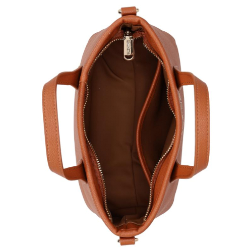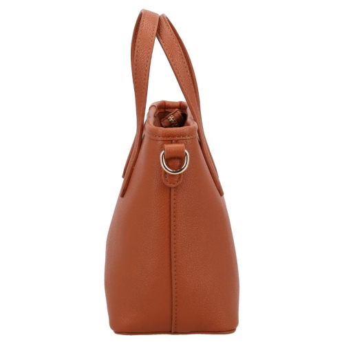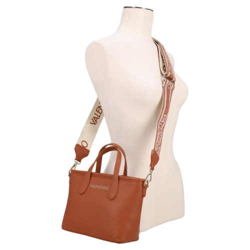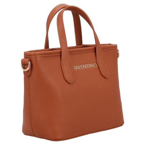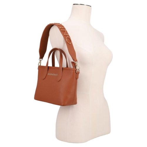 Stap de wereld van verfijnde stijl binnen met de Valentino Bags Dea Re. Het strakke bruine design vormt de perfecte basis voor de luxe goudkleurige hardware, die het geheel een elegante en krachtige uitstraling geeft. De generfde leerlook zorgt voor extra diepte en een hoogwaardige finish, terwijl de merknaam op de voorzijde direct verwijst naar het iconische karakter van Valentino Bags. Een bijzonder detail is de korte schouderband met kunststof merkletters, afgewerkt met subtiele afgeronde goudkleurige studs voor een chique accent. De dubbele handvatten geven de tas een klassieke handtasuitstraling en maken het silhouet extra stijlvol.