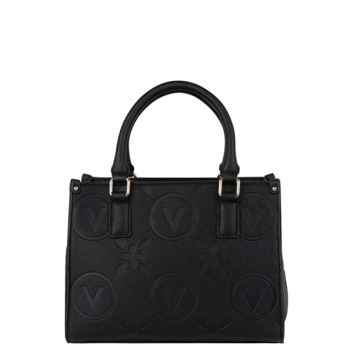 Deze handtas van Valentino Bags is een echte blikvanger! Met zijn elegante zwartkleurige kunststof en stijlvolle logopatroon dat de klassieke Valentino Bags V combineert met verfijnde bloemen, is hij de perfecte metgezel voor elke modebewuste vrouw. De goudkleurige hardware voegt een vleugje luxe toe aan het geheel. Valentino Bags, een merk dat zijn oorsprong vindt in de modehoofdstad van de wereld, Italië, staat bekend om zijn hoogwaardige en stijlvolle creaties. Dit merk heeft zichzelf stevig gepositioneerd in het hogere segment van de modewereld, en dat zie je terug in de details van deze tas.