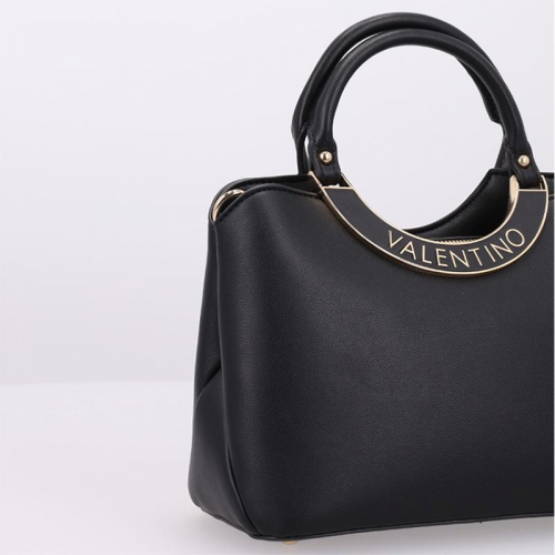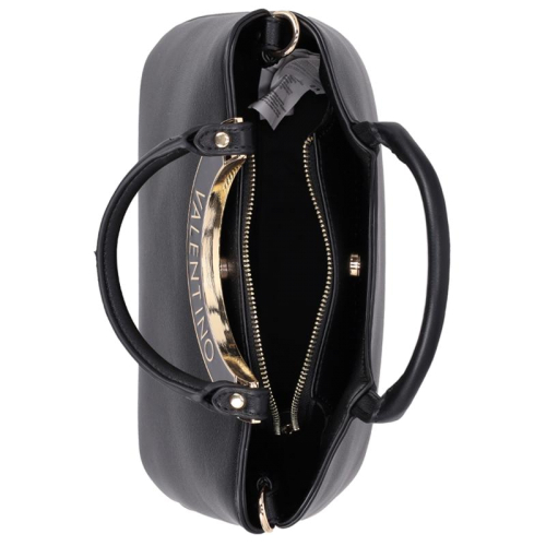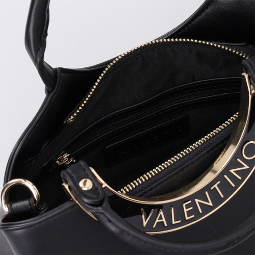 De Valentino Bags Wendy handtas is de perfecte aanvulling op elke outfit. Het strakke zwarte design is elegant afgewerkt met goudkleurige hardware, wat de tas een tijdloze en stijlvolle uitstraling geeft die bij elke gelegenheid past. Op de voorzijde valt het merklogo direct op, verwerkt in een metalen boog waaraan het voorste handvat sierlijk is bevestigd. Dankzij het minimalistische ontwerp en de verfijnde details geeft deze tas moeiteloos een vleugje elegantie aan je dagelijkse look.