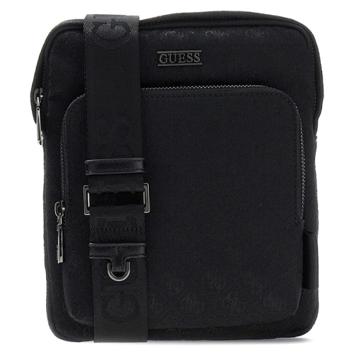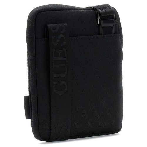 De Guess mannen crossbodytas in het zwart, met een geweven Guess logo print, combineert moeiteloos een stoere uitstraling met een chique touch.