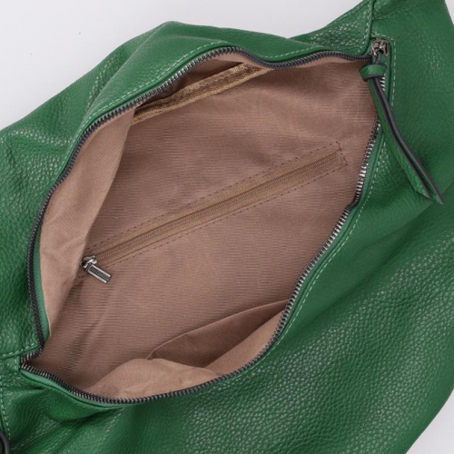 De tas is voorzien van een ritsvak aan zowel de voor- als achterzijde voor snelle toegang tot kleine essentials. Het hoofdcompartiment sluit met een ritssluiting en biedt binnenin twee steekvakken en een extra ritsvak.