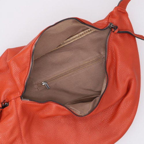 De tas is voorzien van een ritsvak aan zowel de voor- als achterzijde voor snelle toegang tot kleine essentials. Het hoofdcompartiment sluit met een ritssluiting en biedt binnenin twee steekvakken en een extra ritsvak.