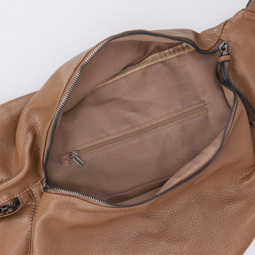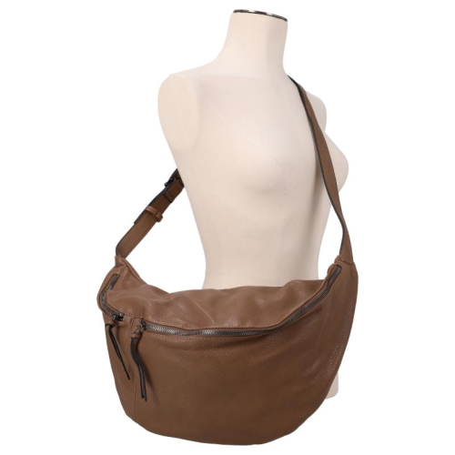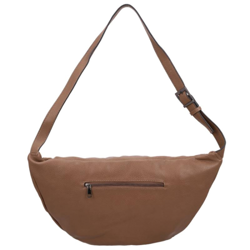 De tas is voorzien van een ritsvak aan zowel de voor- als achterzijde voor snelle toegang tot kleine essentials. Het hoofdcompartiment sluit met een ritssluiting en biedt binnenin twee steekvakken en een extra ritsvak.