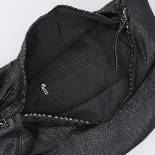 De tas is voorzien van een ritsvak aan zowel de voor- als achterzijde voor snelle toegang tot kleine essentials. Het hoofdcompartiment sluit met een ritssluiting en biedt binnenin twee steekvakken en een extra ritsvak.