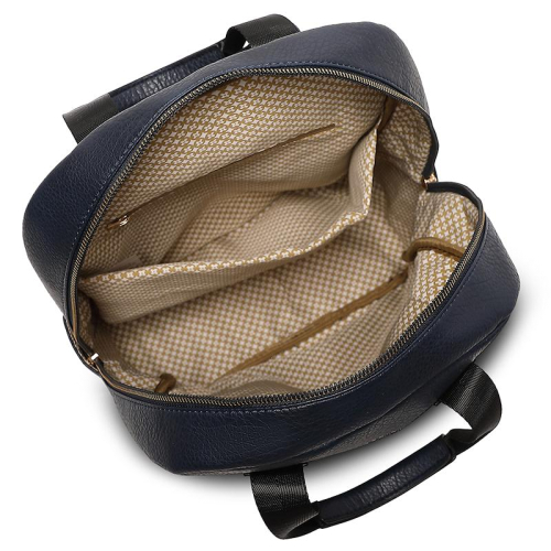 De Puccini Disa rugzak is een stijlvolle blauw kunstleren tas met zwarte accenten en goudkleurige details. Dit model combineert elegantie met functionaliteit en biedt voldoende ruimte voor je dagelijkse benodigdheden, inclusief een 15,4 inch laptop. Perfect voor werk, school of vrije tijd, zonder in te leveren op klasse!