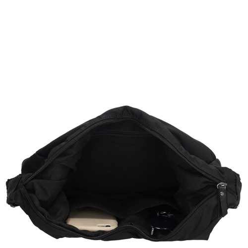 De Beagles Calvia is een praktische en moderne schoudertas, uitgevoerd in zwart nylon en afgewerkt met zilverkleurige hardware. Het lichte materiaal en de strakke vormgeving maken deze tas ideaal voor dagelijks gebruik.