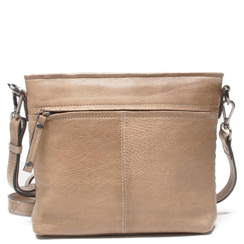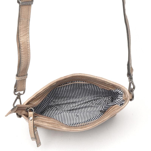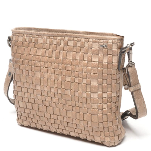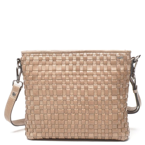 Ervaar de tijdloze elegantie van de Berba Amalfi crossbodytas met luxe gevlochten leren voorkant in stijlvol taupe.