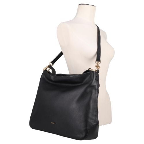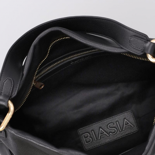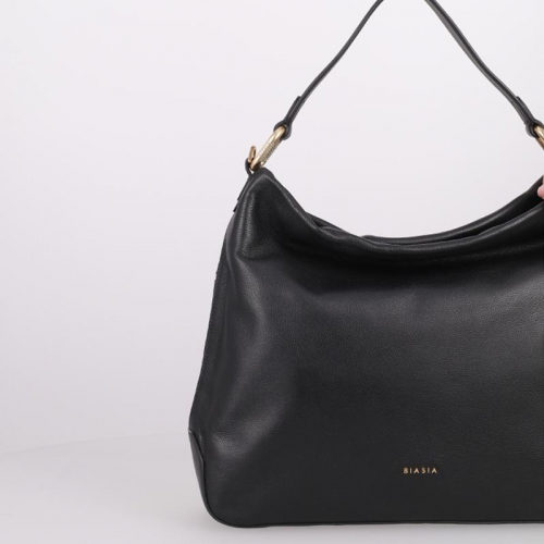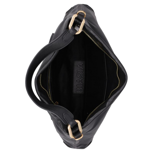 Laat je inspireren door de tijdloze uitstraling van de Biasia Noveau, een stijlvolle zwarte leren schoudertas met elegante goudkleurige accenten. Dankzij het ruime formaat en het klassieke design is deze tas een perfecte keuze voor elke gelegenheid!