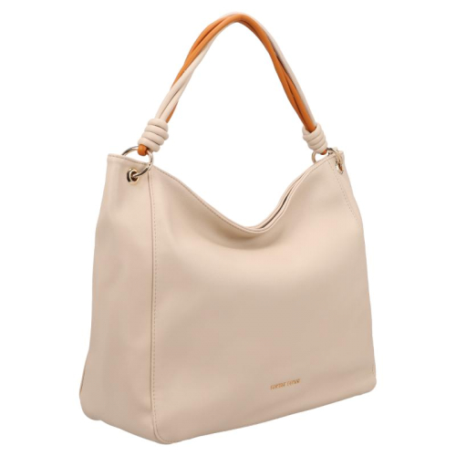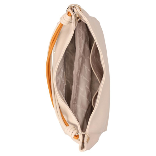 Stel je voor: je loopt door de stad met een tas die niet alleen jouw outfit, maar ook je dag compleet maakt. Dat is precies wat de Daniele Donati schoudertas uit de sprankelende Bella collectie voor je doet. Deze tas is een echte eyecatcher met zijn rechthoekige, slouchy model in een subtiele beige tint. Het geplooide design geeft een speelse touch, terwijl het handvat in twee prachtige kleuren, beige en cognac, met geknoopte details aan de uiteindes, een chique uitstraling biedt. De goudkleurige hardware voegt een vleugje glamour toe.