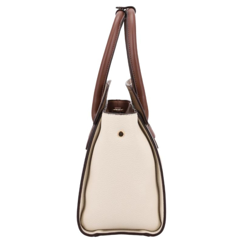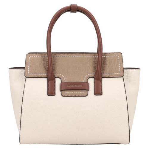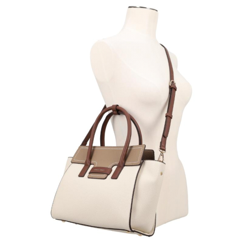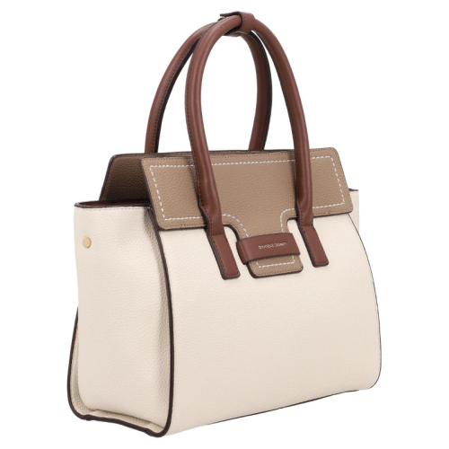 Haal stijl in huis met de Zola handtas van Daniele Donati. De tas is een heerlijk frisse verschijning met zijn warme off-white en beige tinten, en de bruine details maken hem samen met de contrasterende witte stiksels een echte blikvanger. Goudkleurige hardware maakt het ontwerp helemaal af. Het merk Daniele Donati, bekend om zijn Italiaanse flair en vakmanschap, heeft met de Zola tas een perfecte balans gevonden tussen elegantie en functionaliteit.