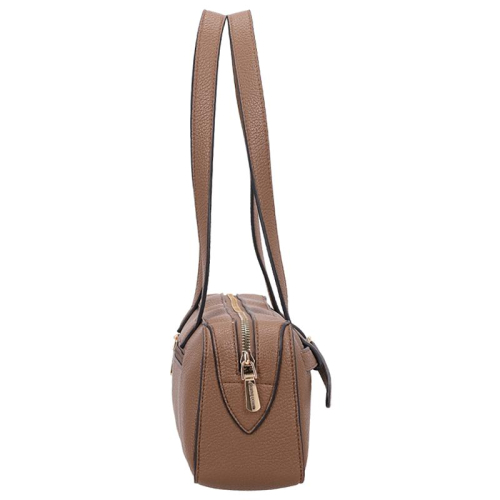 De tas kan comfortabel aan de hengsels worden gedragen als schoudertas, ideaal voor dagelijks gebruik.