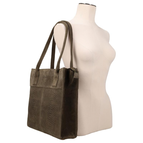 De DSTRCT Portland Road is een elegante tas in warm groen, uitgevoerd in suède met een crocoprint. Het logo is subtiel gedebossed in het materiaal en de zilverkleurige hardware voegt ee moderne, luxe touch toe.