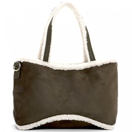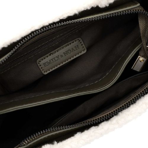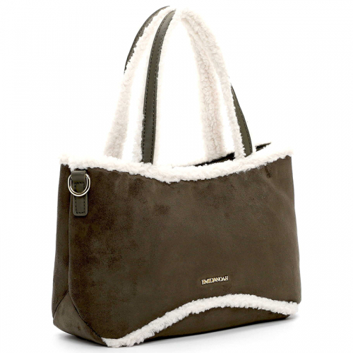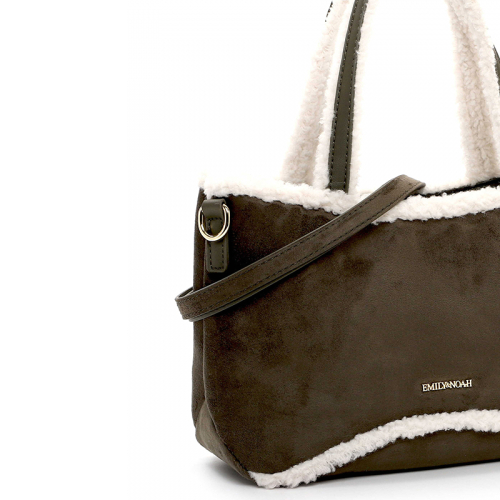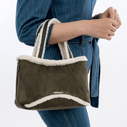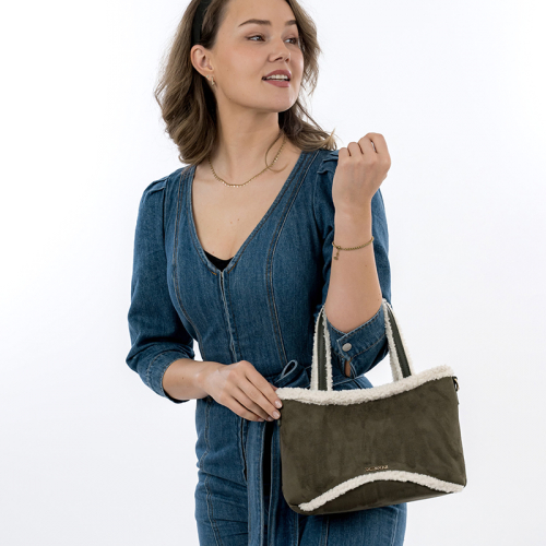 De suède look in groen straalt rust en luxe uit, terwijl de naden met schapenvachtaccenten zorgen voor een warme, winterse touch. Goudkleurige hardware maakt het geheel af met een subtiele glans. Een tas die niet alleen mooi is, maar ook karakter heeft.