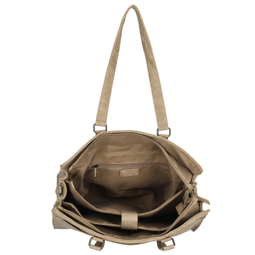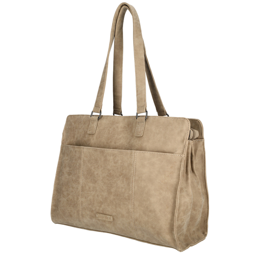 De Enrico Benetti Ruby in de kleur taupe heeft twee hoofdcompartimenten die van elkaar worden gescheiden door een laptopvak die geschikt is voor laptops tot en met 15 inch.