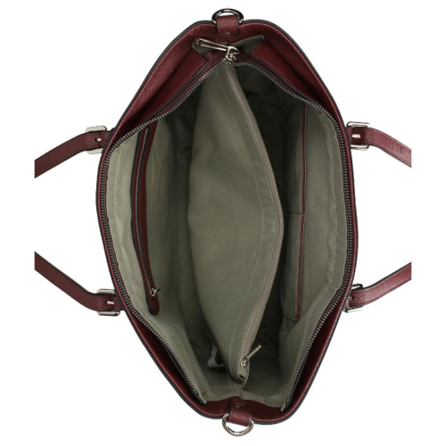 De Flora & Co Nora in de kleur rood heeft twee ruime hoofdcompartimenten en verschillende draagopties.